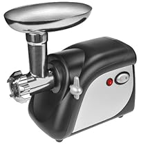 Freshly ground sausages, pates, meats for chili, and fish for soups can all be prepared at home with this professional-quality meat grinder. Equipped with three stainless-steel cutting plates (fine, medium, and large), the easy-to-use machine makes it possible to grind to different levels of coarseness. Simply cut the meat into pieces and place on the filling tray, then drop the pieces into the filling neck, and press with the food pusher--minced meat dispenses below. In the unlikely event of a jam, just flip the switch to the reverse function to safely unblock the grinder. For added versatility, the machine provides a cookie accessory for use with cookie dough, plus sausage and Kebbe (meat ball) attachments for making a variety of delicious, homemade meals for family and friends. The appliance should be hand-washed only, and a user manual with recipes comes included. The meat grinder measures 15-4/5 by 19-3/5 by 18 inches and carries a one-year limited warranty.