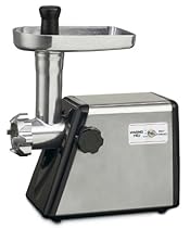 Engineered by Waring, this versatile meat grinder helps you ensure that the food you cook is as fresh as possible. Suitable for home use, the machine grinds beef for tacos, turkey for burgers, and pork for sausage, as well as non-meat items like vegetables and fruit. Powered by a 150-watt motor, the grinder has a durable die-cast metal hopper and brushed stainless-steel housing. It comes with three separate cutting plates to let you set the grind for the task at hand. Use the fine plate for baby food and hamburger, the medium plate for relishes and soup meat, and the coarse plate for vegetables or chunky ground. Operation of the grinder is simple, and the clearly marked on/off panel includes a reverse function that helps retrieve clogged food. The reverse toggle must be held down so you cannot accidentally leave it engaged. Waring also includes a small and a large sausage attachment for transferring blended meat and spices to sausage casings. Although the grinder may not have the hard-wearing qualities of all-metal models, the plastic used in its construction is both spare and durable. Waring includes a plastic food pusher and a recipe booklet, as well as a 5-year motor warranty and a 1-year warranty on the appliance. Cutting plates must be washed by hand. --Emily Bedard